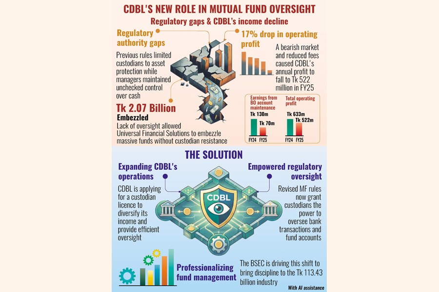 The development comes at a time when MF custodians are facing heavy criticism for their failure to prevent scams in fund management and when CDBL is experiencing shrinking income amid a bearish secondary market.