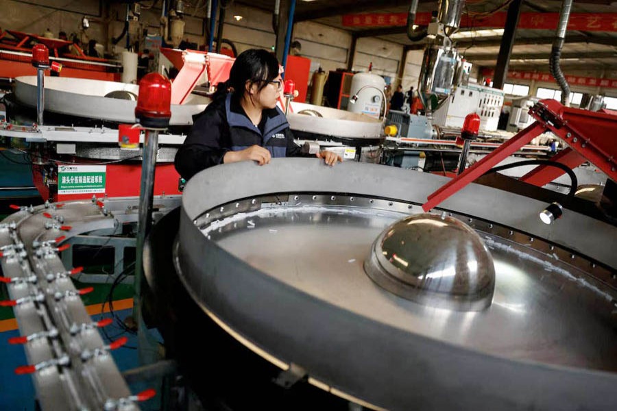 A worker monitors the production line of drip tape fittings at a factory of DAYU Water Group Co, in Jiuquan, during an organised media tour in Gansu province, China recently. — REUTERS BEIJING, Dec 10 (Reuters): In one of their most dovish statements in more than a decade, Chinese leaders signalled on Monday they are ready to deploy whatever stimulus is needed to counter the impact of expected US trade tariffs on next year's economic growth.