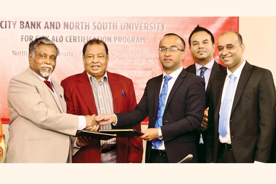 In presence of M. A. Hashem, Chairman, Board of Trustees of North South University, an agreement in this regard was recently signed by Mashrur Arefin, MD & CEO, City Bank, and Professor Atique Islam, Vice-Chancellor, North South University.
