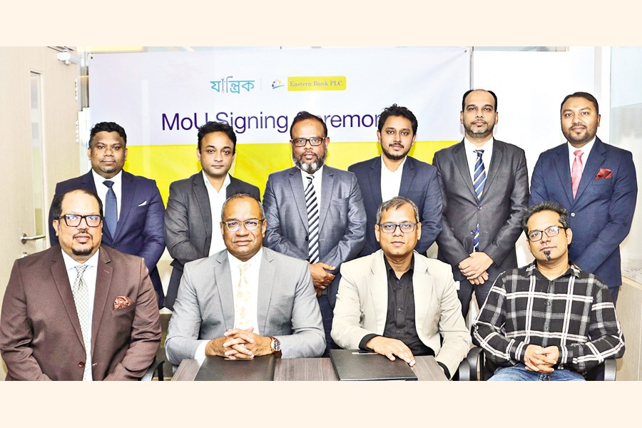 Customers of Eastern Bank (EBL) will enjoy financial support when purchasing cars from Zantrik. M. Khorshed Anowar, deputy managing director and head of retail and SME banking of EBL, and Biplob Chandra Biswas, co-founder and COO of Zantrik Limited, signed an agreement to this effect in Dhaka recently. EBL's Mohammad Salekeen Ibrahim, head of asset, and Ghalib Shams Islam, acting head of asset - retail; and Muhtasim Mahdi Al-Farooque, managing director from Zantrik, were present, among others.