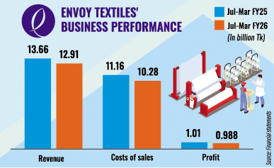 For the nine months through March this year, the company's profit dropped slightly by 2.3 per cent to Tk 988 million, while revenue decreased 5.5 per cent to Tk 12.91 billion.