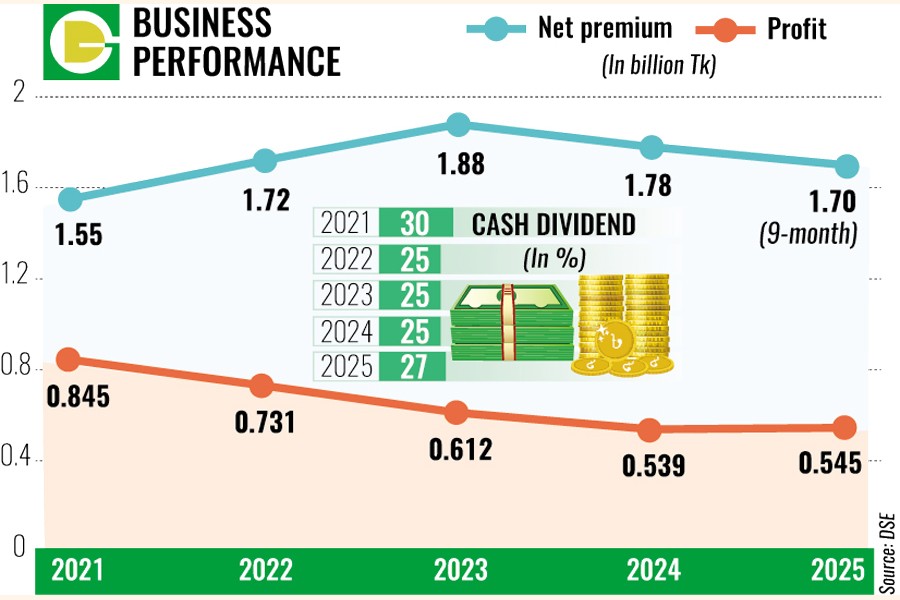 The general insurer's consolidated earnings per share (EPS) stood at Tk 5.44 in 2025, as against Tk 5.39 in the previous year, according to a stock exchange filing on Monday.