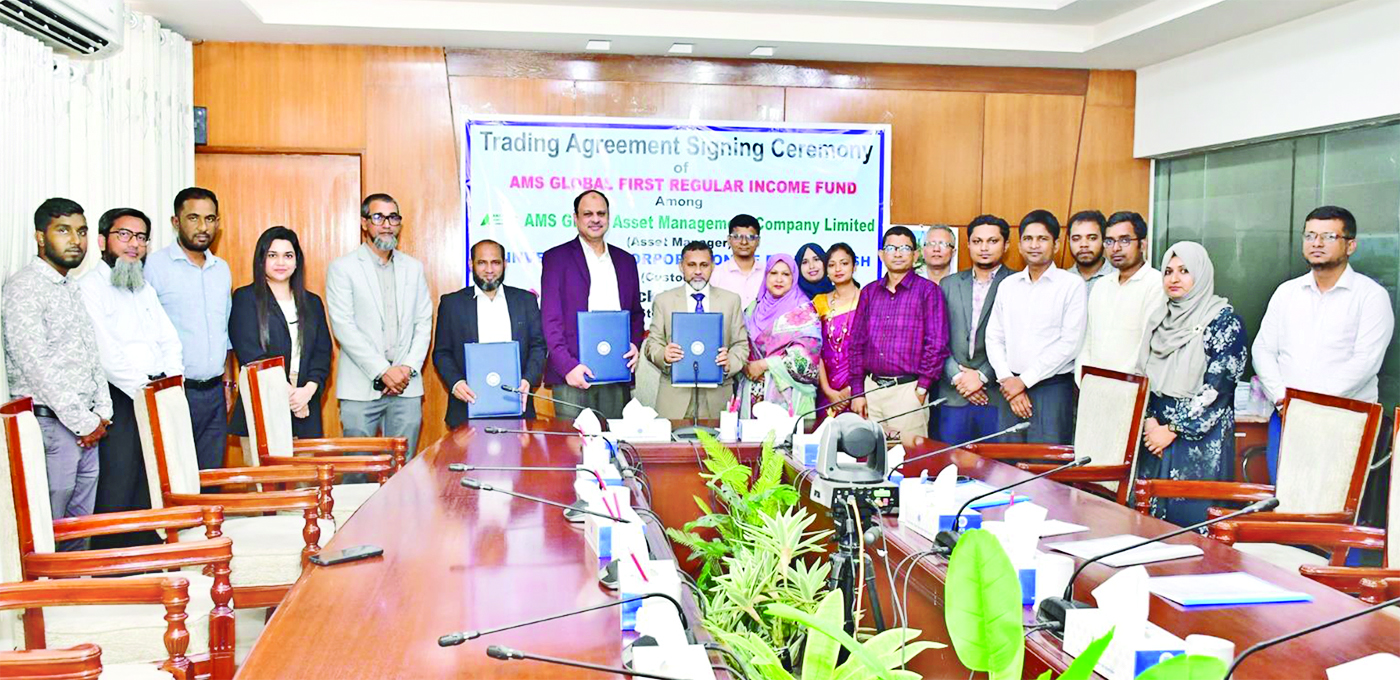 Investment Corporation of Bangladesh (ICB), AMS Global Asset Management Company Limited and UCB Stock Brokerage Limited signed a tripartite trading agreement for conducting transactions in securities of 'AMS Global First Regular Income Fund'. ICB is the custodian of this fund. Md Nurul Huda, Deputy Managing Director of ICB, was present at the signing ceremony held at the Boardroom of ICB recently. Irin Perveen Binte Faruque, Assistant General Manager of Custodian Department, ICB; Muhammad Asmoth Ali Dori, Chief Executive Officer of AMS Global; and Mohammed Rahmat Pasha, Managing Director and Chief Executive Officer of UCB Stock Brokerage; signed the agreement on behalf of their respective organisations.