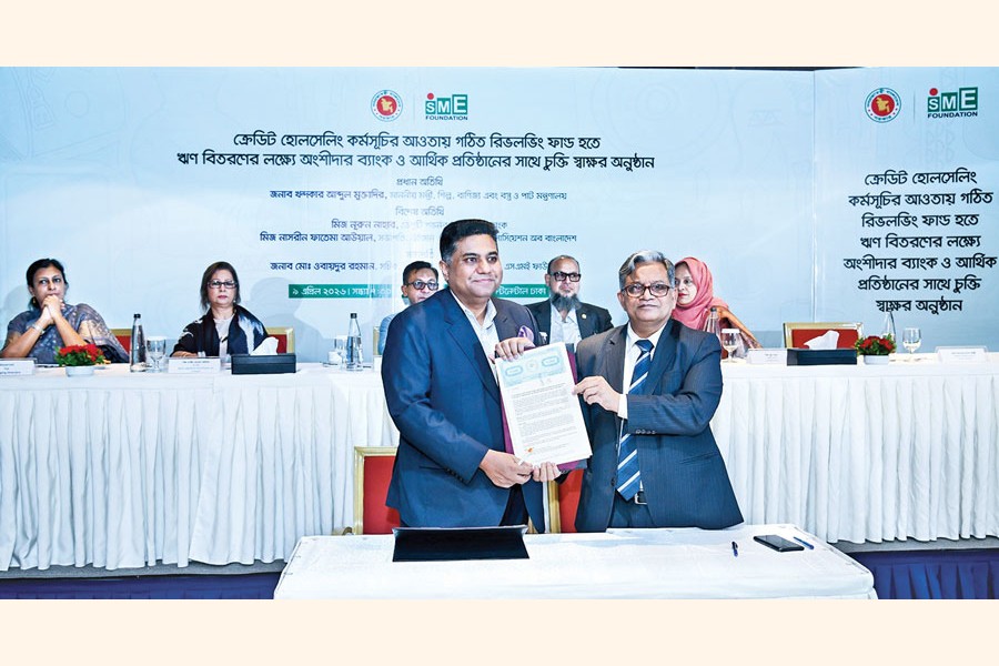 IPDC Finance PLC and the SME Foundation have signed two agreements to expand access for small and medium enterprises (SMEs) to affordable and convenient financing. IPDC Finance Managing Director Rizwan Dawood Shams and SME Foundation Managing Director Anwar Hossain Chowdhury signed the agreements recently. Commerce and Industries Minister Khandaker Abdul Muktadir was present as the chief guest and Bangladesh Bank Deputy Governor Nurun Nahar as the special guest. Chairperson of the SME Foundation Md Obaidur Rahman presided over the event. Under the agreements, loans on easy terms will be provided to productive industries within the SME sector, various business clusters, and women entrepreneurs across the country. The initiative also aims to accelerate economic growth by ensuring low-interest financing for agro-based industries and the food processing sector.