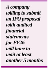 In that case, a company willing to submit an IPO proposal with audited financial statements for FY26 will have to wait at least another five months.