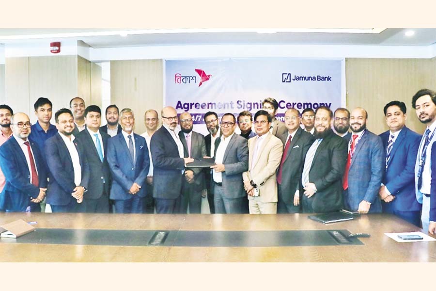 Jamuna Bank signed an agreement with bKash to provide 24/7 cash management services for bKash distributors, agents and merchants. The signing ceremony took place on October 15 at Jamuna Bank's head office in Gulshan, Dhaka, with Mirza Elias Uddin Ahmed, MD & CEO of Jamuna Bank, and Kamal Quadir, CEO of bKash, representing their respective organisations. Through this partnership, bKash partners with Jamuna Bank accounts can add money, transfer and generate e-money anytime, supporting faster transactions and a cashless economy.