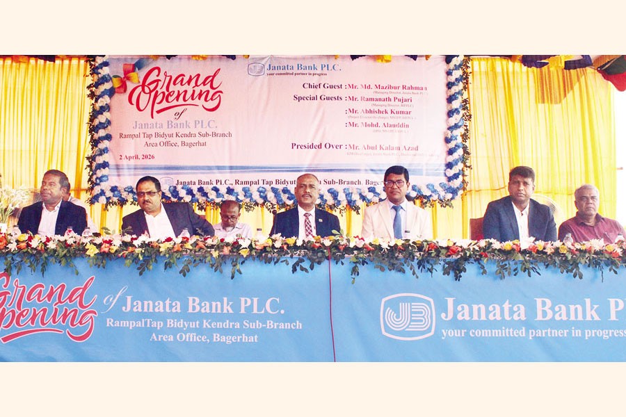Janata Bank PLC has recently opened Rampal Tap Bidyut Kendra Sub-branch in Bagerhat. Managing Director Md Mazibur Rahman inaugurated the sub-branch as the chief guest. Managing Director of Bangladesh India Friendship Power Company Limited (BIFPCL) Ramanath Pujari, Project Director-in-Charge Abhishek Kumar, and DPD Md. Alauddin were present as special guests. GM-in-Charge of the bank's Khulna Divisional Office Abul Kalam Azad presided over the event.