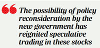 "The possibility of policy reconsideration by the new government has reignited speculative trading in these stocks," said Mr Islam.