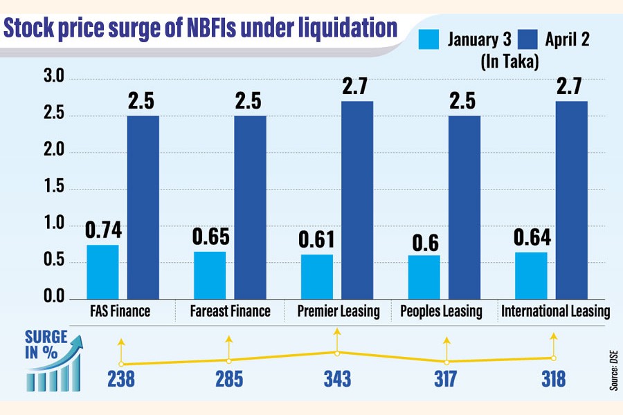 Despite facing liquidation, the shares of scam-hit non-bank financial institutions (NBFIs) have surged sharply on the stock exchanges over the past three months.
