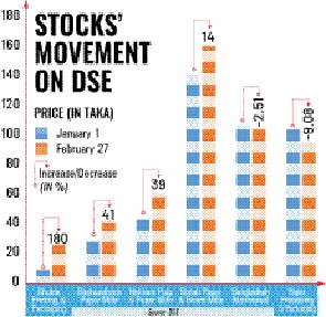 A team of the DSE on February 4 went to visit the head office of KPPL to inspect its operational status but found it closed. By that time, however, the stock soared 257 per cent to Tk 33.20 per share from Tk 9.3 per share on January 1.