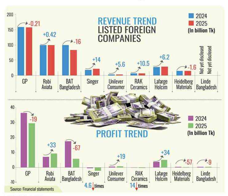 Of the 13 multinational firms listed on the stock market, nine have disclosed their 2025 financials so far. Only three posted profit growth, while four others reported declines ranging from 9 per cent to 67 per cent. Two companies remained in the red due to heavy debt burdens.