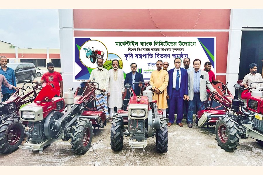 Mercantile Bank Limited (MBL) donated agri machinery at Kalaiya, Bauphal in Patuakhali on Thursday from the bank's special CSR fund. MBL Vice Chairman ASM Feroz Alam, and Additional Managing Director & CRO Mati Ul Hasan handed over the farming machinery to the farmers.