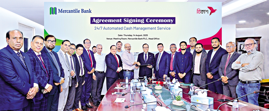 Mercantile Bank PLC and bKash Limited signed an agreement for 24/7 automated cash management services on Thursday. Mati Ul Hasan, Managing Director of the bank, and Kamal Quadir, CEO of bKash Limited, were present at the signing ceremony held at the meeting room of the bank's head office. Under this agreement, Mercantile Bank will provide 24/7 automated cash management services through its online banking and card services to agents, dealers and distributors of bKash located at different parts of the country, subject to opening of account at Mercantile Bank.