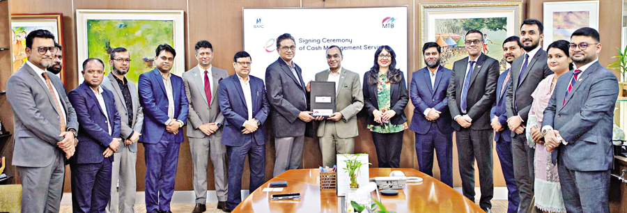 Mutual Trust Bank (MTB) and SMC Enterprise signed an agreement for an advanced cash management solution integrated with MTB eBank at MTB Centre, Gulshan-1, Dhaka. Syed Mahbubur Rahman, managing director & CEO of MTB, and Sayef Uddin Nasir, managing director of SMC Enterprise, exchanged the agreement on behalf of their respective organisations, in the presence of senior officials from both entities.