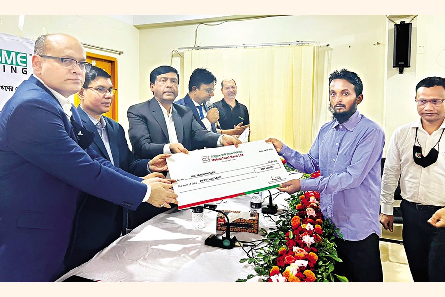 Marginal farmers get MTB Loan: Mutual Trust Bank Limited (MTB) gave away loan disbursement cheques to marginal farmers at a ceremony in Jashore on Tuesday. SM Hasan Reza, Executive Director, Bangladesh Bank, Khulna Office, was present as the chief guest and Md Ruhul Amin, Upazila Krishi Officer, as special guest while Md Khalid Mahmood Khan, Deputy Managing Director & Chief Business Officer, MTB, presided over the event.