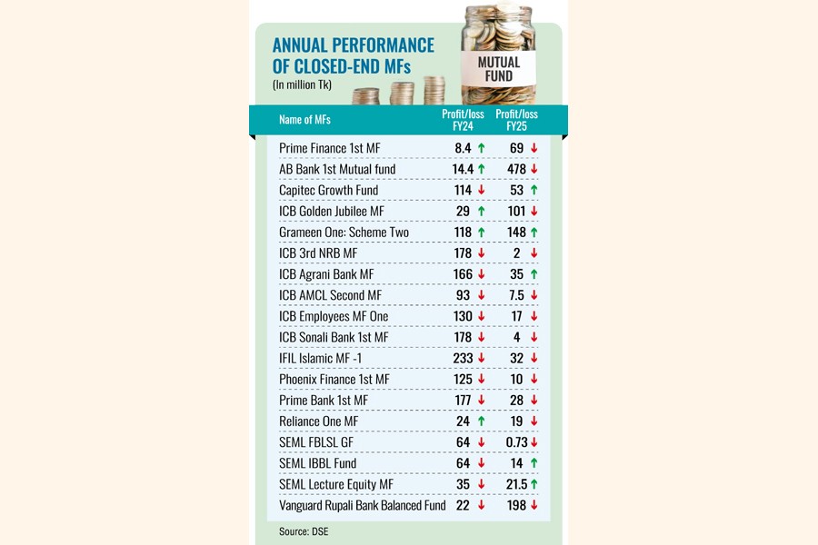 For example, ICB AMCL 1st Agrani Bank MF reported a profit of Tk 35 million in FY25, recovering from a loss of Tk 166 million in the year before.