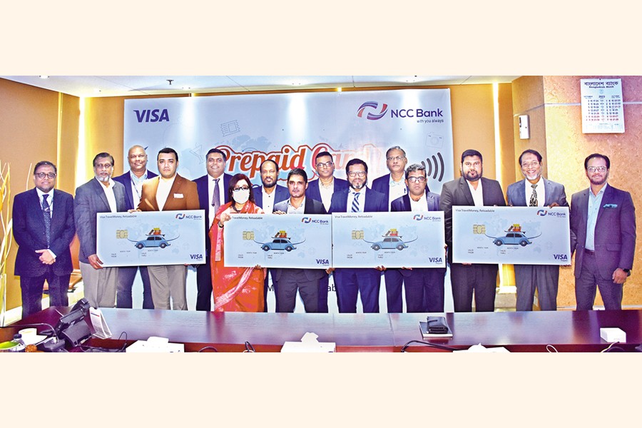 NCC Bank launched a reloadable Visa consumer prepaid card at its head office on Tuesday. Chairman of the bank Md Abul Bashar, Vice-Chairman Sohela Hossain, Managing Director and CEO Mohammad Mamdudur Rashid, Additional Managing Director M Shamsul Arefin, along with other senior NCC Bank team members and high officials of Visa & IT Consultants Limited launched the card by cutting a cake.