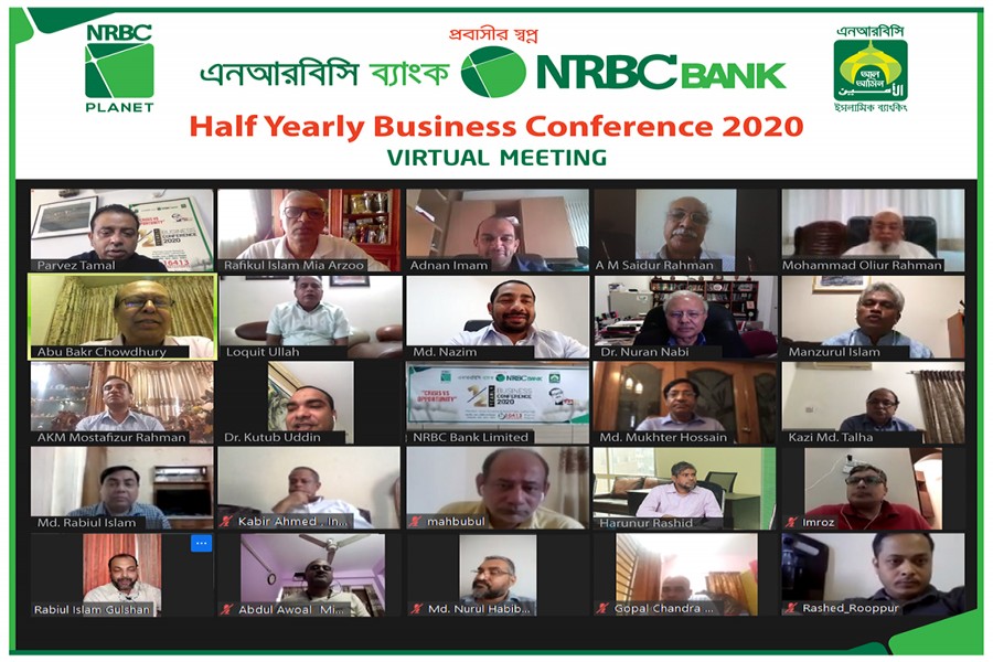 NRB Commercial Bank Ltd held its 'Half yearly Business Conference-2020' on Tuesday. Chairman of the bank S M Parvez Tamal attended the programme through video conference as the chief guest. Chairman of Executive Committee Mohammed Adnan Imam FCCA, Chairman of Audit Committee Rafikul Islam Arzoo, Chairman of Risk Management Committee Abu Mohammad Saidur Rahman, Director Mohammed Oliur Rahman, Director Abu Bakr Chowdhury, Director Loquit Ullah, Director Mohammed Nazim, Director Dr. Nuran Nabi, Director Mohammed Manzurul Islam, Director AKM Mostafizur Rahman, Alternate Director Dr. Kutub Uddin also attended the video conference. Managing Director & CEO Md. Mukhter Hossain presided over the conference while Additional Managing Director Kazi Md. Talha, Deputy Managing Director Md. Rabiul Islam, Head of the Divisions, head of the branches of the bank joined on the programme through video conference.
