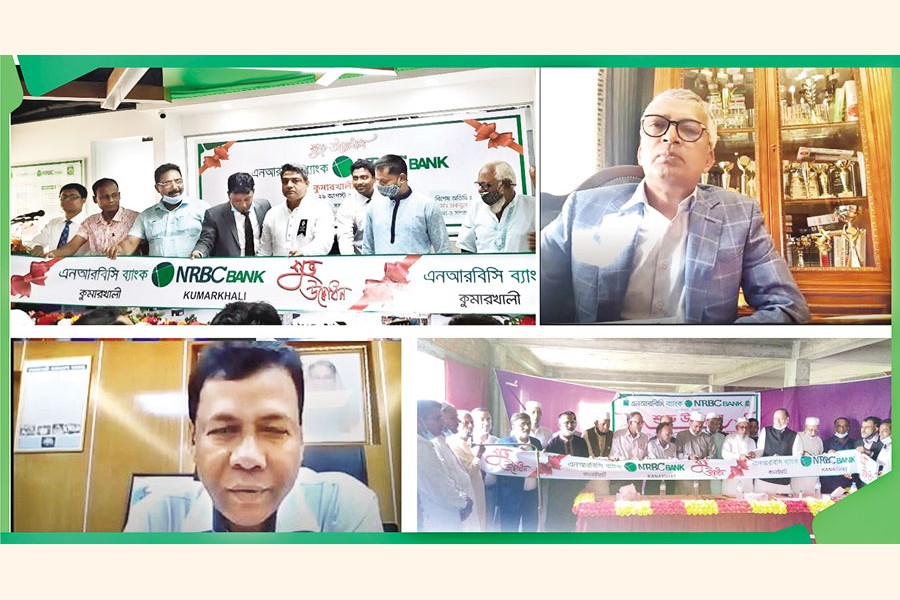 NRBC Bank launched its banking services at Kumarkhali (Kushtia) and Kanaighat (Sylhet) on Sunday. Barrister Selim Altaf George MP, Kushtia-4, inaugurated Kumarkhali Sub-branch as the chief guest while Rafikul Islam Mia Arzoo, Vice Chairman of the bank, presided over the ceremony through videoconferencing. Md. Mokbul Hossain, Information and Broadcasting Secretary, joined the programme through video conference as special guest. Mohammed Oliur Rahman, Director of the bank, inaugurated the Kanaighat, Sylhet Sub-branch.