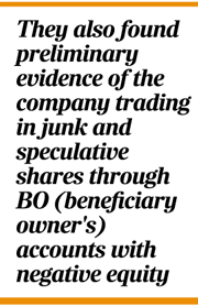 BSEC sources said they also found preliminary evidence of the company trading in junk and speculative shares through BO (beneficiary owner's) accounts with negative equity.