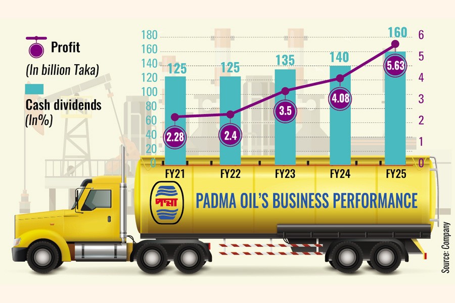 Padma Oil has posted a record annual profit of Tk 5.63 billion for FY25, driven by higher sales and substantial non-operating income from bank deposits.