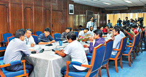 Bangladesh Bank Executive Director SM Moniruzzaman addressing a press conference on BASIC Bank affairs Sunday.