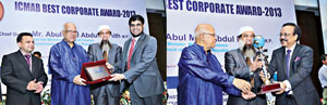 Photo: (from left) Managing Director of Exim Bank Dr. Mohammed Haider Ali Miah receiving the ICMAB Best Corporate Award 2013
