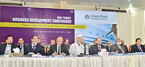 Prof. Abu Nasser Muhammad Abduz Zaher, Chairman of Islami Bank Bangladesh Limited addressing as chief guest at Business Development Conference of the Bank\'s Dhaka Central, North and South Zones and Corporate branches held at a local convention hall Frida