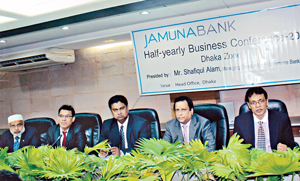 The Half-yearly Business Conference 2014, Dhaka Zone of Jamuna Bank Limited (JBL) was held at Head Office, Dhaka. Shafiqul Alam, Managing Director & CEO of JBL presided over the conference. Mirza Elias Uddin Ahmed, Mosleh Uddin Ahmed, A. K. M. Saifuddin A