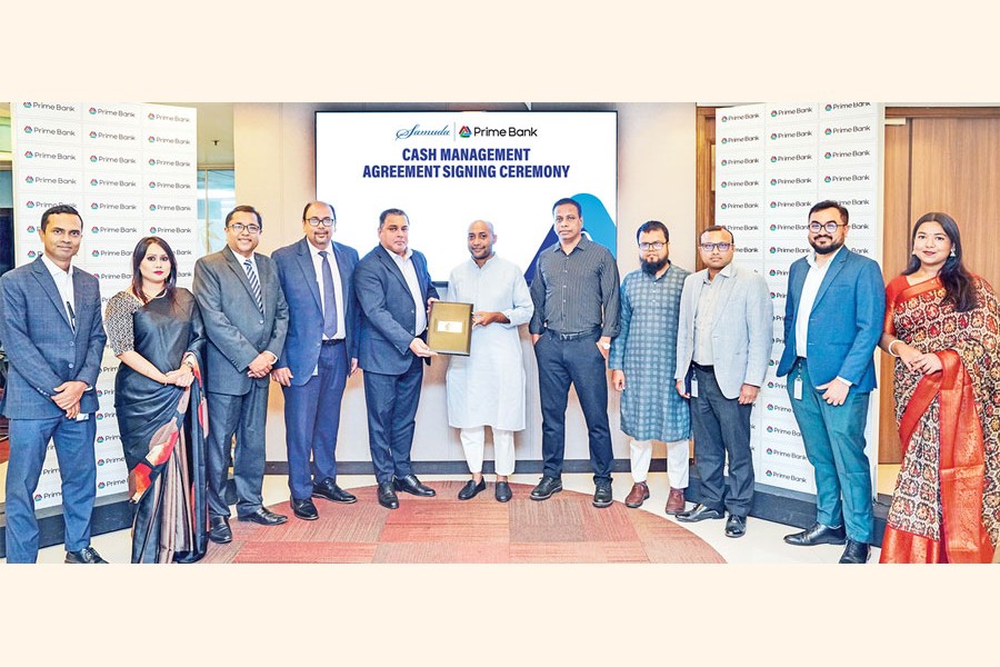 Prime Bank has entered into a strategic agreement with Samuda Group to provide comprehensive cash management solutions tailored to the organisation's operational needs. The agreement was recently signed at the bank's corporate office in Gulshan. Samuda Group will utilise Prime Bank's digital platform, PrimePay, to execute all types of domestic disbursements. Additionally, the group will leverage the bank's extensive nationwide branch network to efficiently manage sales collections.