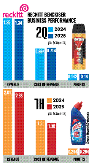 Reckitt Benckiser (Bangladesh) experienced a marginal drop in profit in the second quarter to June this year, compared to the same quarter last year, owing to lower sales amid inflationary pressure.