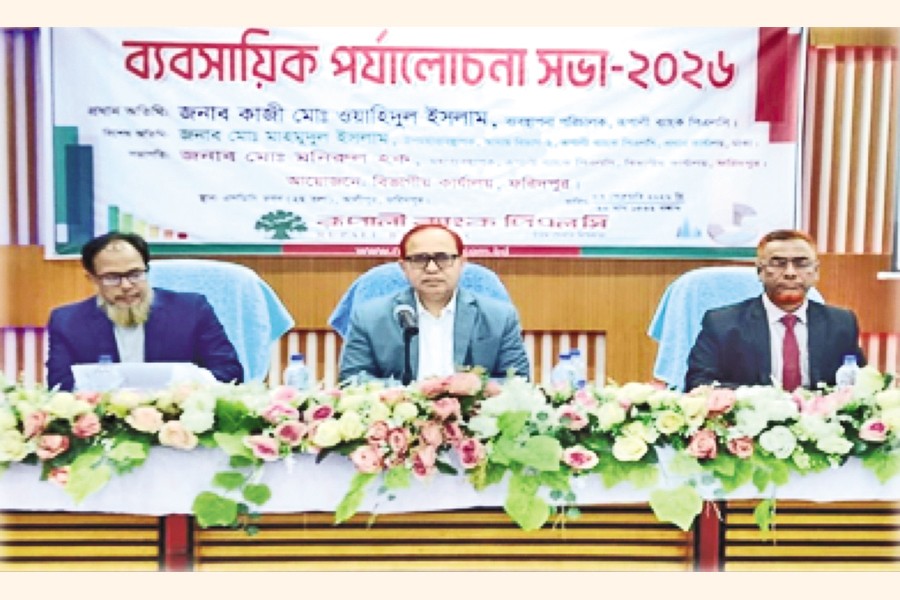 Rupali Bank PLC's Faridpur Divisional office held a business review meeting at the SDC Tower Auditorium in Faridpur district on Tuesday. Managing Director of the bank Kazi Md. Wahidul Islam was present as the chief guest. Faridpur Divisional Head and General Manager Md Monirul Haque presided over the event while Deputy General Manager of the Head Office's Recovery Division Md Mahmudul Islam was present as a special guest.