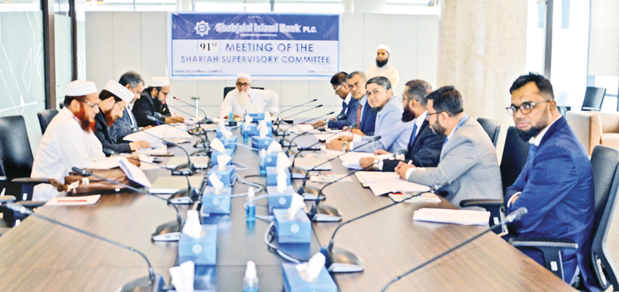 The 91st meeting of the Shari'ah Supervisory Committee of Shahjalal Islami Bank PLC (SJIBPLC) was held at the Corporate Head Office of the bank on Monday. Chairman of the committee Mufti Shamsuddin Zia presided over the meeting. The meeting discussed various issues related to Shari'ah compliance in overall Islamic Banking operations and provided Shari'ah-based guideline and approvals on various matters. Among others, committee member Mufti Abdullah Masum, Managing Director of the bank Mosleh Uddin Ahmed and Head of Shari'ah Secretariat of the bank Md. Abul Bashar were present in the meeting.