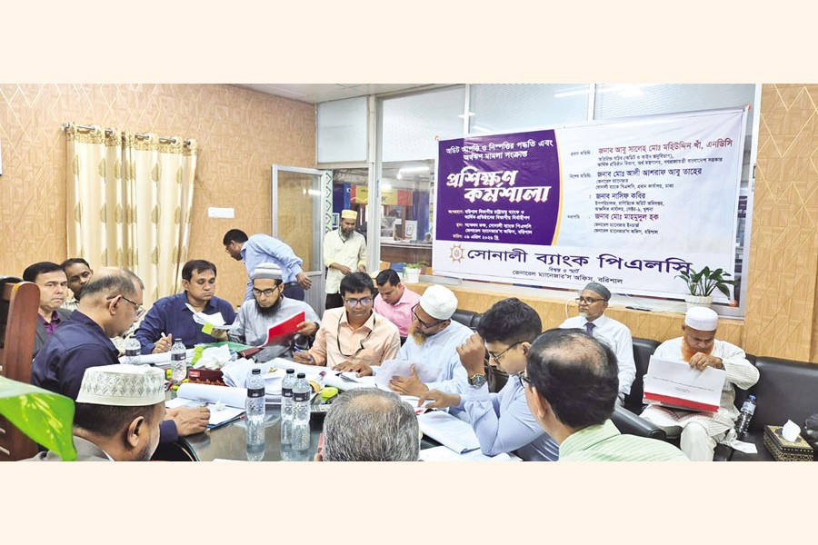 Sonali Bank PLC arranged a training workshop on audit objection, settlement process and money loan cases at the conference room of Barishal GM Office in Barishal on Thursday. Additional Secretary of Financial Institutions Division Abu Saleh Md. Mohiuddin Khan attended the event as the chief guest. General Manager of Sonali Bank Md Ali Ashraf Abu Taher and Deputy Director of Commercial Audit Directorate Nasif Kabir were present as special guests. GM In-charge of Barishal GM Office Md. Mahmudul Haque presided over the workshop. Divisional executives of Barishal divisional state-owned banks and financial institutions participated in the workshop.