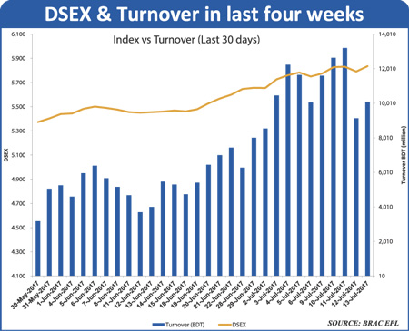 EBL Securities, said, "Throughout the week investors remained optimistic amid strong participation. Investors kept up their hope as market is going through a positive vibe".