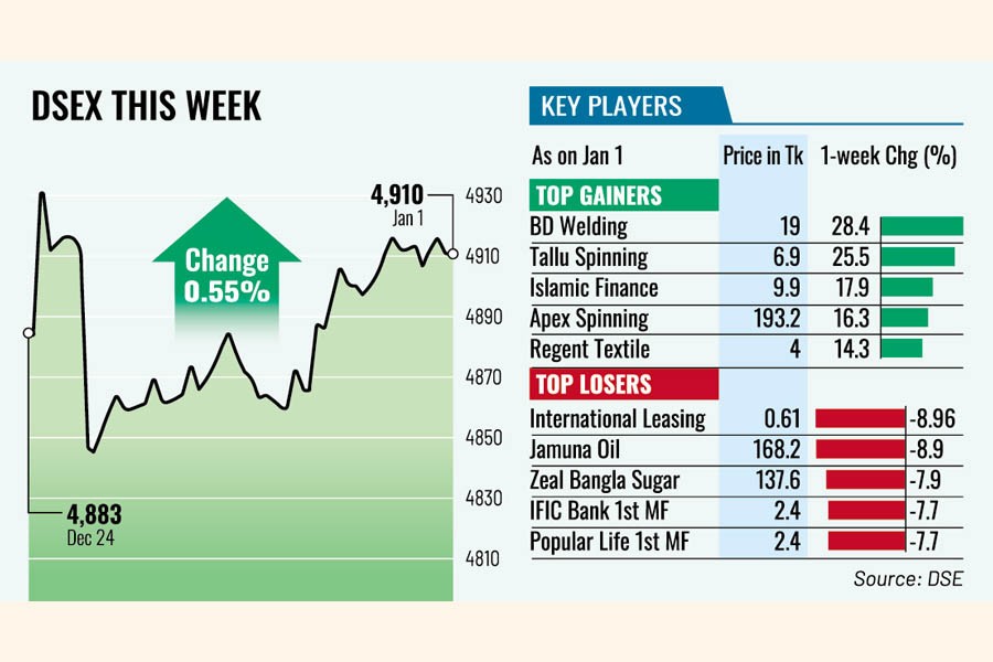 The prime DSEX index finally settled the week 27 points or 0.55 per cent higher at 4,891. The DSEX recovered around 80 points in the past two consecutive weeks.