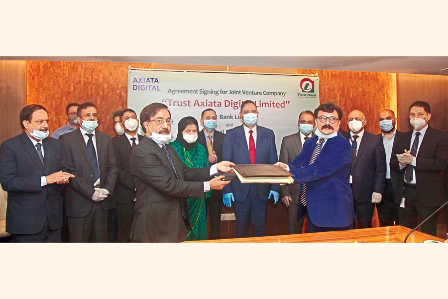 Trust Bank Limited (TBL), sponsored by the Army Welfare Trust, and Malaysia based Asia's digital service company, Axiata Digital Services (ADS), signed a joint venture company agreement Friday to form the new mobile financial service based company, Trust Axiata Digital Limited (TADL), said a statement.