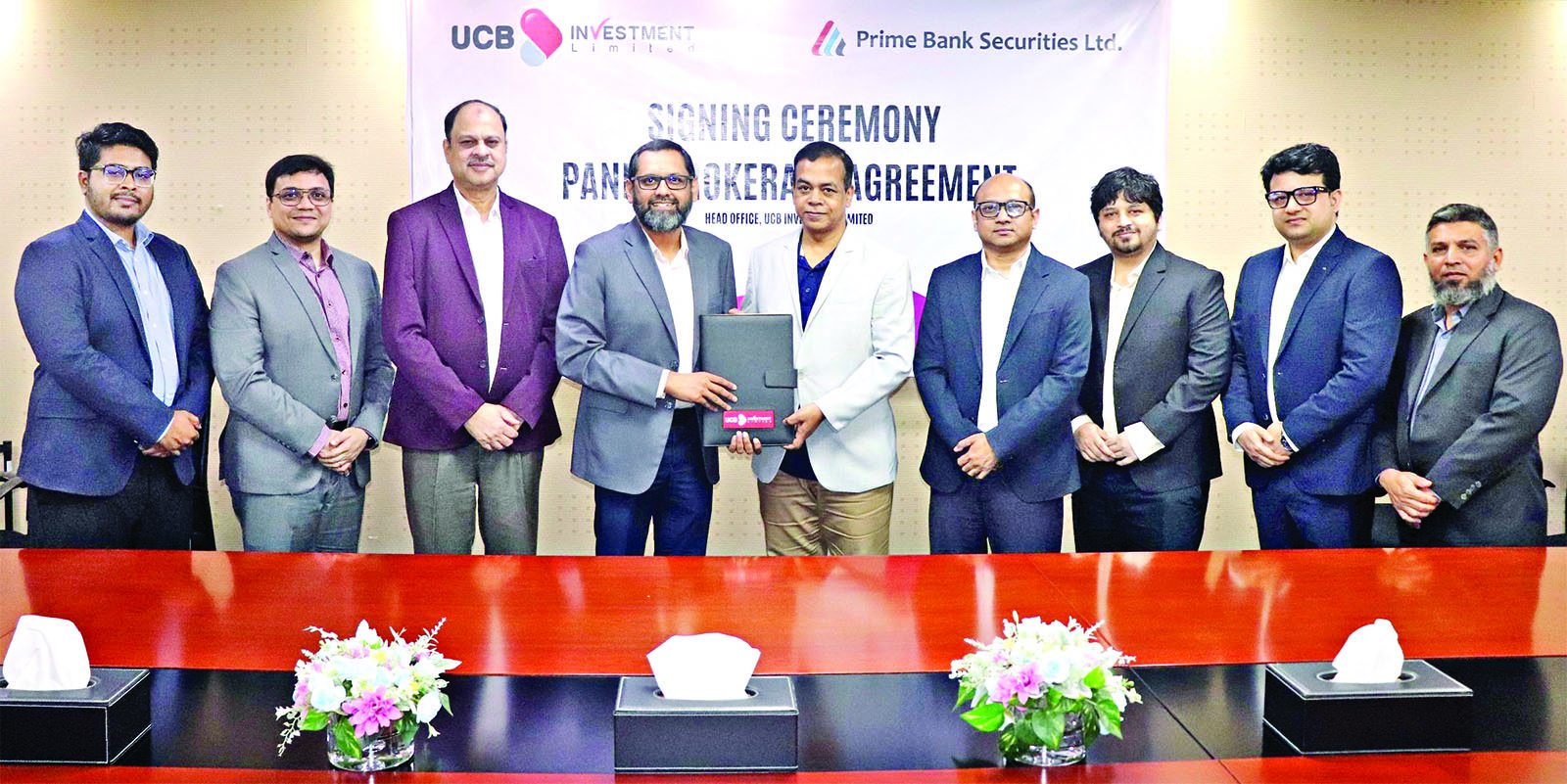 UCB Investment Limited and Prime Bank Securities Ltd. signed a Panel Brokerage Agreement at UCB head office in the capital. The agreement was signed in the presence of UCB Investment Managing Director and CEO Tanzim Alamgir and Prime Bank Securities Managing Director and CEO Md. Moniruzzaman. The partnership aims to enhance trade execution and client services across the Dhaka Stock Exchange (DSE) and Chittagong Stock Exchange (CSE).