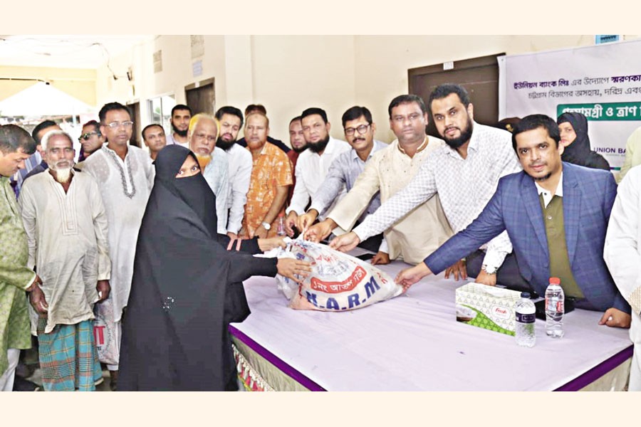 As a part of Corporate Social Responsibility (CSR), Union Bank Limited distributed household goods and relief materials among the poor and homeless people affected by the devastating flood in Chattogram division. Mayor of Dohazari Municipality Mohammad Lokman Hakim distributed the items through the Dohazari Branch of the bank as the chief guest. The Head of IRMD of Head Office SVP Riyadh Mohammad Chowdhury and the Head of Laldighi Branch SVP Md. Arfan Ali were present as special guests.