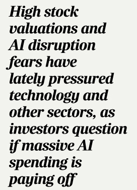High stock valuations and AI disruption fears have lately pressured technology and other sectors, as investors question if massive AI spending is paying off.