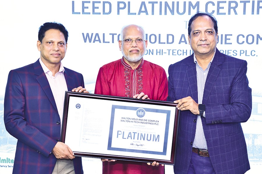Country's superbrand and tech giant Walton has been awarded the prestigious LEED Platinum Certification from the United States Green Building Council (USGBC) for its environment-friendly green 'Mold and Die Complex', says a press release.