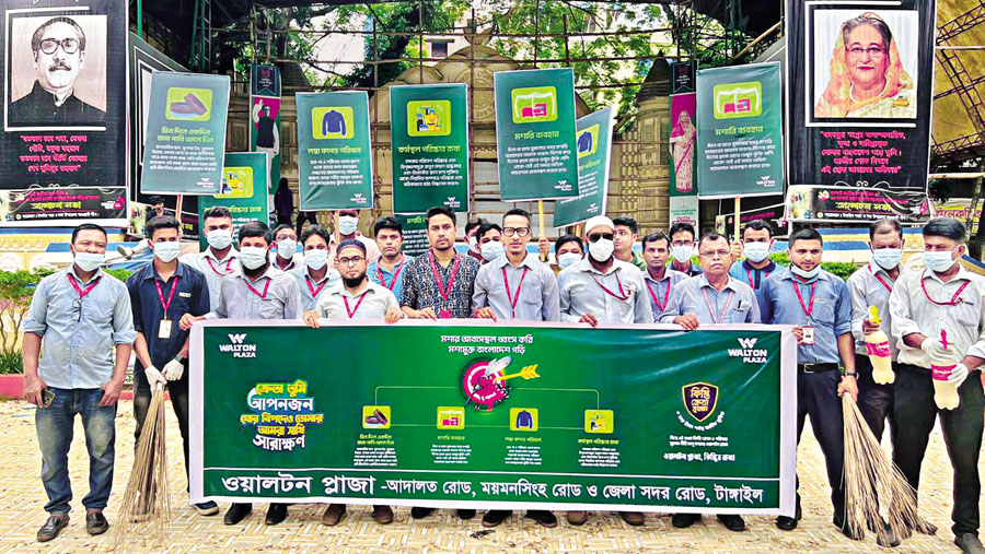 Walton Plaza, the country's largest electronics, electrical and IT products sales and service providing company, conducted a campaign to raise awareness about dengue. The nationwide awareness campaign included rallies, cleaning activities and discussions. The campaign began with awareness rallies at all 645 Walton Plazas across the country. The photo shows an awareness rally in Tangail.
