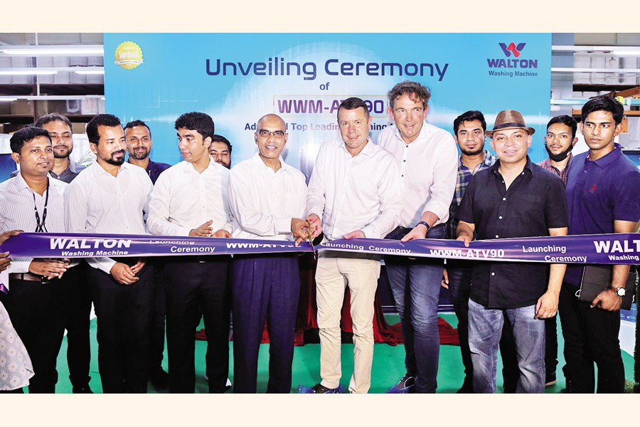 Walton unveiled a new model of washing machine at a programme held at Walton Hi-Tech Industries PLC's headquarters at Chandra in Gazipur recently. While visiting Walton headquarters, Bangladesh Hi-Tech Park Authority (Grade-1) Managing Director Bikarna Kumar Ghosh, along with the Netherlands delegations as well as Walton's higher officials, unveiled the new model of washing machine of Walton brand through cutting ribbon.