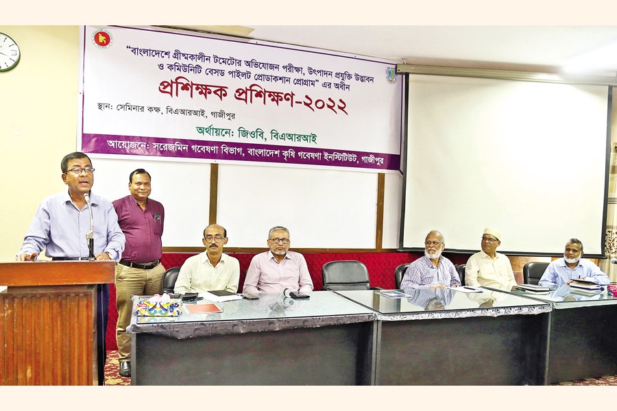 The On-Farm Research Division (OFRD), Gazipur of Bangladesh Agricultural Research Institute (BARI) organised a trainers' training titled 'BARI Invented Hybrid Summer Tomato Production Management' at the seminar room of the institute on Monday. BARI Director General Dr Debasish Sarker inaugurated the training workshop as the chief guest. Chief Scientific Officer and Head of OFRD, Gazipur Dr Md Mazharul Anwar presided over the function