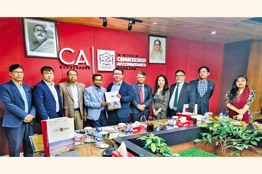 The Institute of Chartered Accountants of Bangladesh (ICAB) held a meeting with the delegates from CPA Australia led by its Executive General Manager Deborah Leung at the CA Bhaban in Dhaka on Tuesday. ICAB President Md Moniruzzaman led the ICAB team while ICAB Chief Operating Officer Mahbub Ahmed Siddique presented a paper on Membership Pathway Agreement (MPA). ICAB Vice President Md Yasin Miah, Vice President Md. Johirul Islam, Immediate Past President & Council Member Md. Shahadat Hossain, ICAB CEO Shubhashish Bose and other officials and Nicklaus Wee, Regional Manager - Emerging Markets, and Don Poh, Business Development Manager - South Asia, from CPA Australia were present.