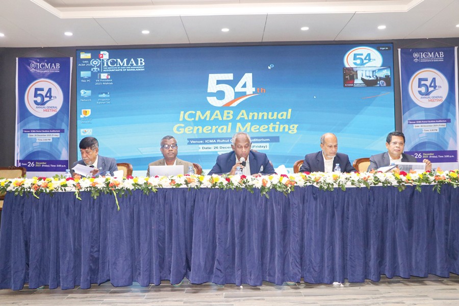 The Institute of Cost and Management Accountants of Bangladesh (ICMAB) held its 54th Annual General Meeting (AGM) at the ICMAB Ruhul Quddus Auditorium, ICMA Bhaban, in Dhaka recently.