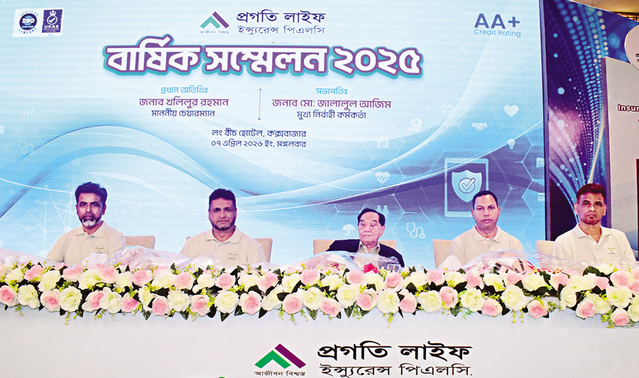 Pragati Life Insurance PLC held its Annual Conference 2025 at a hotel in Cox's Bazar recently, bringing together senior management and development officials from across the country. The conference was inaugurated by its Chairman Khalilur Rahman as the chief guest, while Chief Executive Officer Md Jalalul Azim presided over the event. Additional Managing Director (F&A) Chandra Shekhar Das and Additional Managing Directors Jahangir Hossain and Faruque Mahmud were also present. Top-performing development officials were awarded during the event.