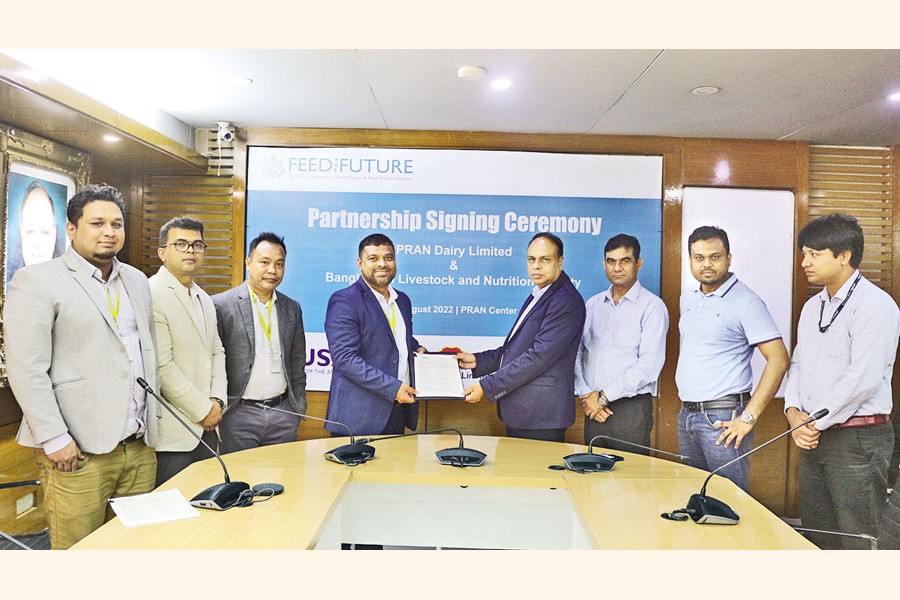 Eleash Mridha, Managing Director at PRAN Group, and Muhammad Nurul Amin Siddiquee, Chief of Party of the project, signed the deal on Thursday at the head office of PRAN Dairy at Badda in the capital.