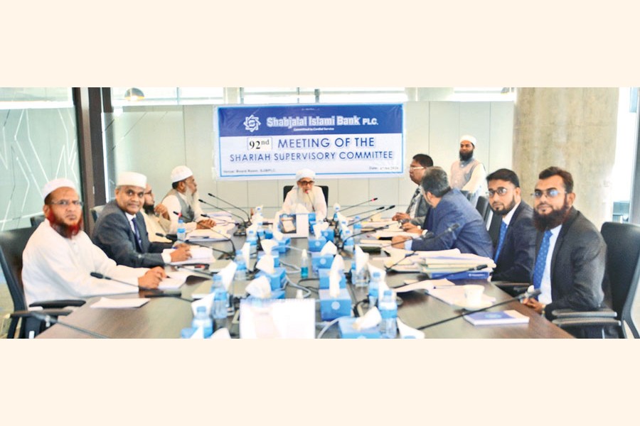 The 92nd meeting of Shari'ah Supervisory Committee of Shahjalal Islami Bank PLC (SJIBPLC) was held at the Boardroom of Corporate Head Office of the bank recently. Chairman of the committee Mufti Shamsuddin Zia presided over the meeting. The meeting discussed various issues related to Shari'ah compliance in overall Islamic Banking operations. Members of the committee Mufti Mizanur Rahman and Mufti Abdullah Masum, Managing Director & CEO Mosleh Uddin Ahmed and Head of Shari'ah Secretariat of the bank were also present in the meeting.