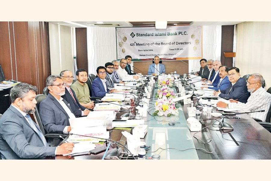 The 425th Board Meeting of Standard Islami Bank PLC was held at the bank's Head Office in Dhaka on Thursday. Chairman of the Board of Directors Mohammed Abdul Aziz presided over the meeting attended by Vice Chairman Gulzar Ahmed, Directors Kamal Mostafa Chowdhury, Ashok Kumar Saha, Ferozur Rahman, S.A.M. Hossain, Mohammed Shamsul Alam, Md. Zahedul Hoque, A K M Abdul Alim, Ashit Kumar Saha, Jhahedul Alam and Independent Directors Golam Hafiz Ahmed and Khondoker Rumy Ehsanul Huq. Observer of Standard Islami Bank and Director (PSD) of Bangladesh Bank Md. Sharafat Ullah Khan, Acting Managing Director Md Siddiqur Rahman and Company Secretary Md. Mizanur Rahman were also present.